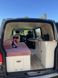 Le véhicule a reçu une isolation complète ainsi qu’un habillage intérieur soigné, avec des meubles fabriqués sur mesure pour optimiser l’espace et offrir de nombreux rangements.
